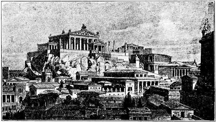 The illustrations, which, it is hoped, add considerably to the interest of the book, have been collected from many sources. Many of the highly informational “restorations” included are from the monumental work of Jakob von Falke, Hellas und Rom, the English version whereof has long ceased to be available to American readers.