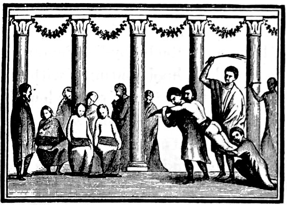 [211] The gladiatorial games were never introduced in Athens. Once when, in the local council, it was proposed to imitate Rome and build an amphitheater, a prominent philosopher quashed the whole project by moving “first to abolish the altar of Pity.”