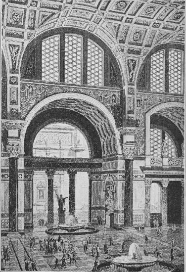 [200] The tepidarium in the later Baths of Diocletian was about 300 feet long by 92 feet wide, but probably that in the Baths of Trajan was somewhat smaller.